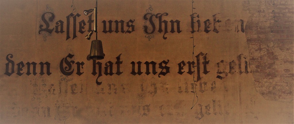 In der Kirche befinden sich äußerst freundliche Einladungen zum Verweilen, auf denen mehrfach betont wird, dass man nicht verpflichtet ist zu spenden oder sich taufen zu lassen. Auch die Adresse der Wiedereintrittsstelle fehlt dankenswerterweise. Stattdessen hört man leise Musik, die sich zunächst wie ein einzelnes und auch einstimmig gespieltes Orgelregister anhört. Aber von der architektonisch interessanten Eule-Orgel auf der Empore kann die Musik nicht kommen. Da immer noch der dunkle Kirchenraum dominiert, verzögert sich die Analyse der mysteriösen Musik. Sie könnte von einem Theremin stammen, dem ersten elektronischen Musikinstrument, lange vor der Hammond-Orgel. Zusammen mit seinem Erfinder war es lange verschollen und vergessen. Nun klingt es wie ein klagend verflötetes Flageolettcello und ganz entfernt auch nach einer frühen Hammond-Orgel. Auf dem Büchertisch liegt, passend zur Herkunft der Kirche, Anna Seghers‘ Roman TRANSIT. Wer zu lesen beginnt oder sogar bis zuende liest, wird höchst erstaunt sein über die Aktualität eines über achtzig Jahre alten Buches: